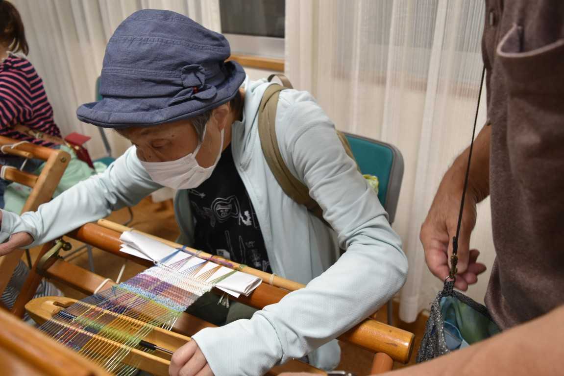 さをり織の体験コーナー。きれいに織りあがっていました。