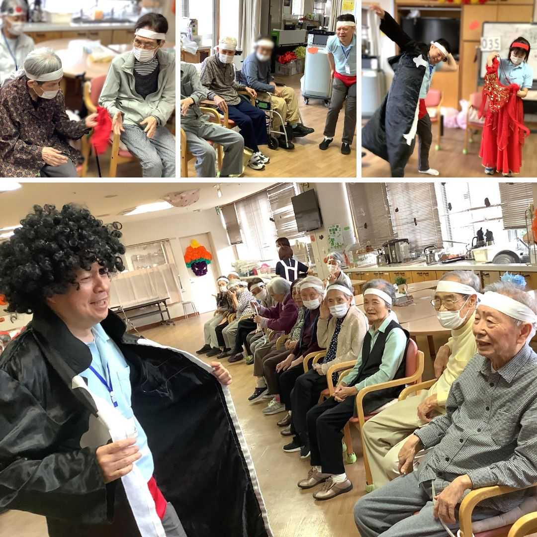 紅白に分かれての各競技! 仮装競争?では衣装を一人ずつ手渡しでお隣りへ渡し