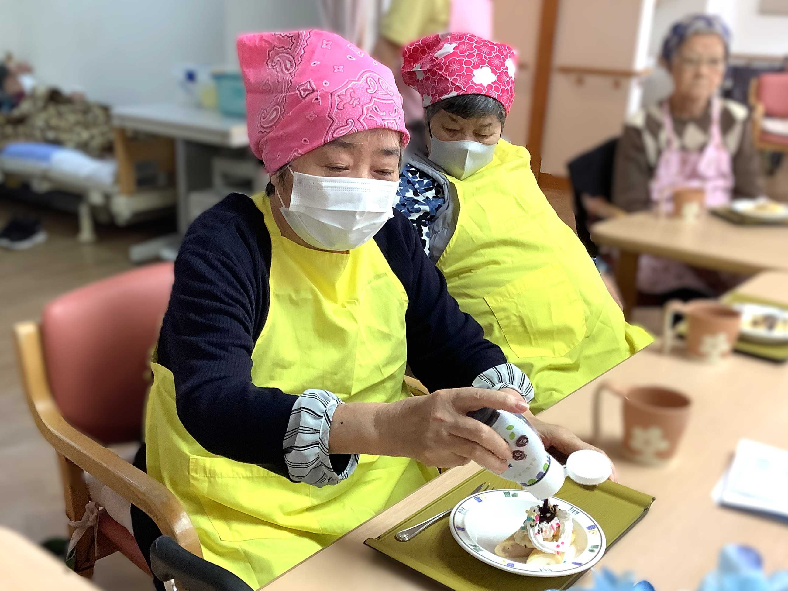 おやつレクリエーションは自分たちでおやつを作ることを楽しみます