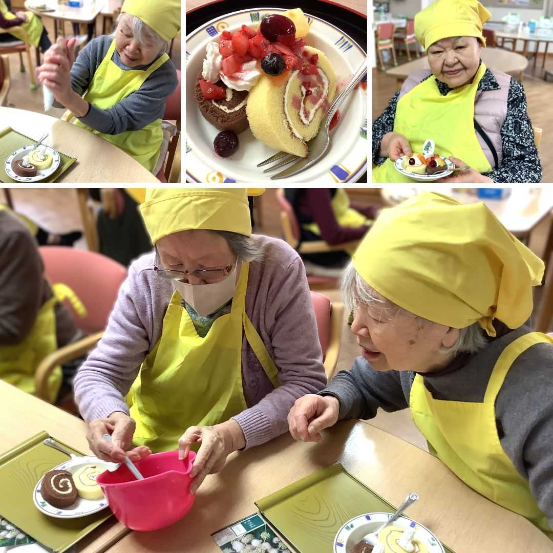 12月のおやつ作りは、一足早いクリスマスケーキを作り、おやつで召し上がっていただきました♪