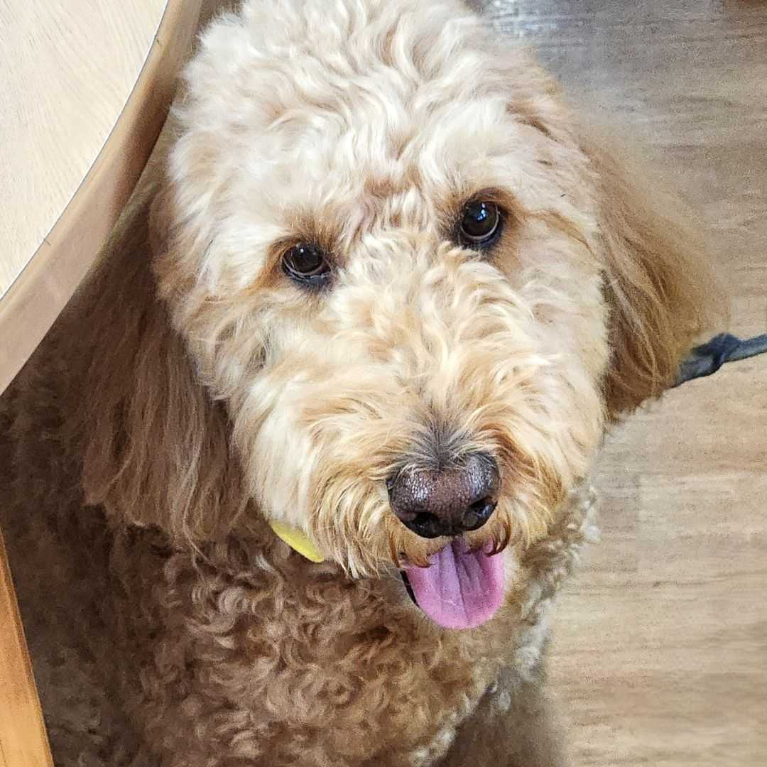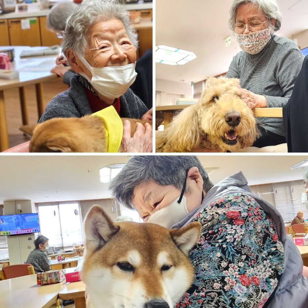 柴犬の千代ちゃんをお膝に乗せながら これまた幸せそうな笑顔