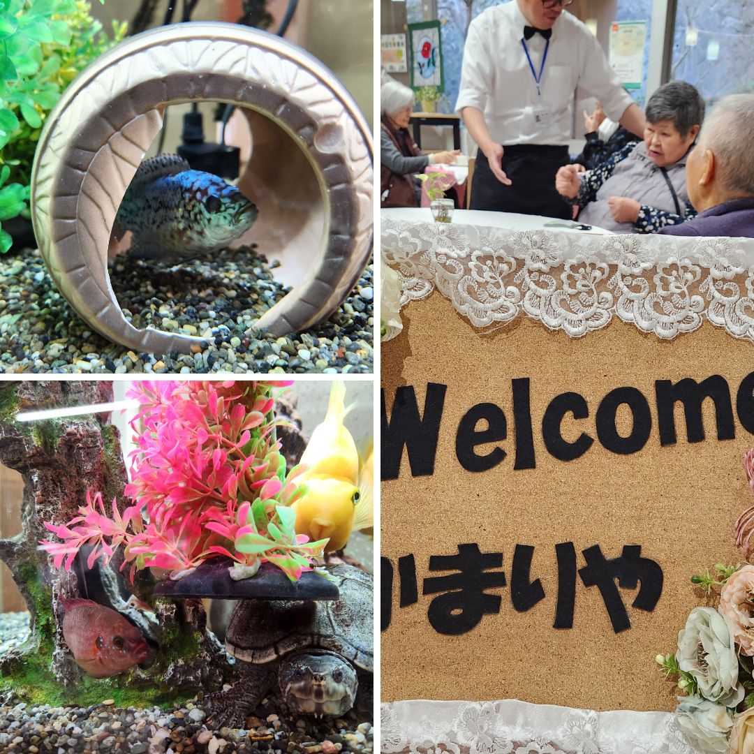 ふと 横の水槽を除くと 鮮やかな青い色と赤い色の魚が増えてました!