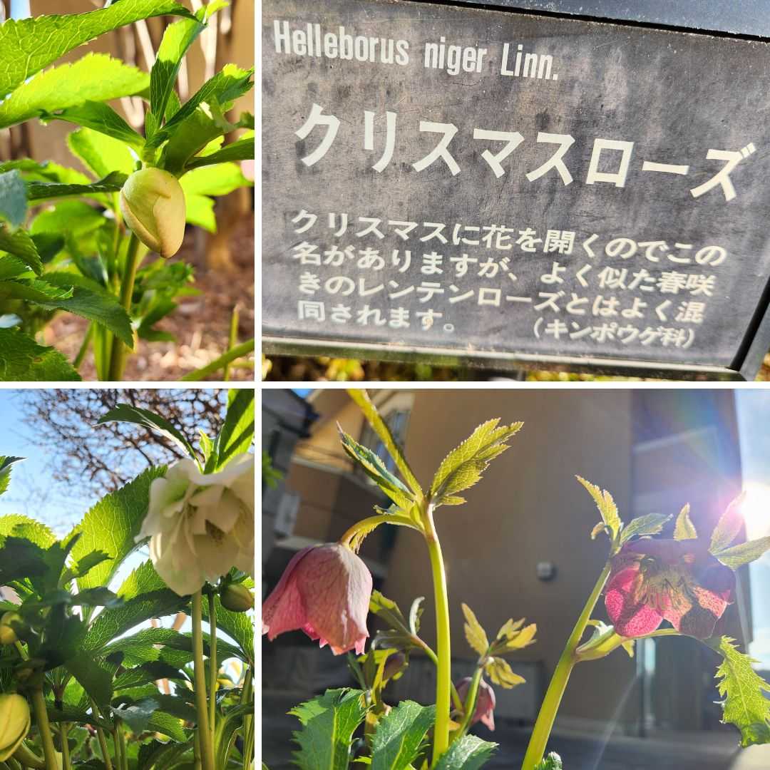 すみなす会の敷地内では、フキノトウやクリスマスローズ