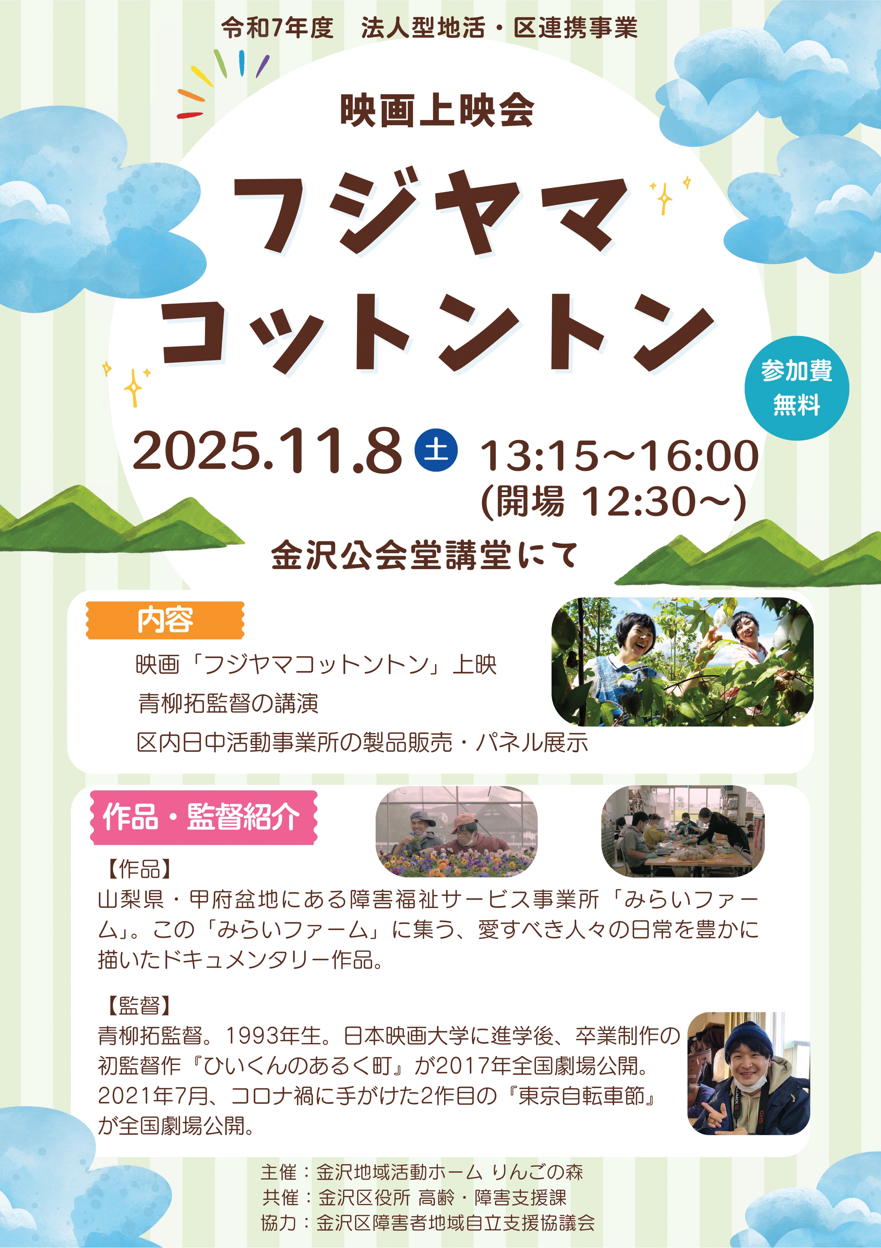 【りんごの森】映画上映会『フジヤマコットントン』 のご案内