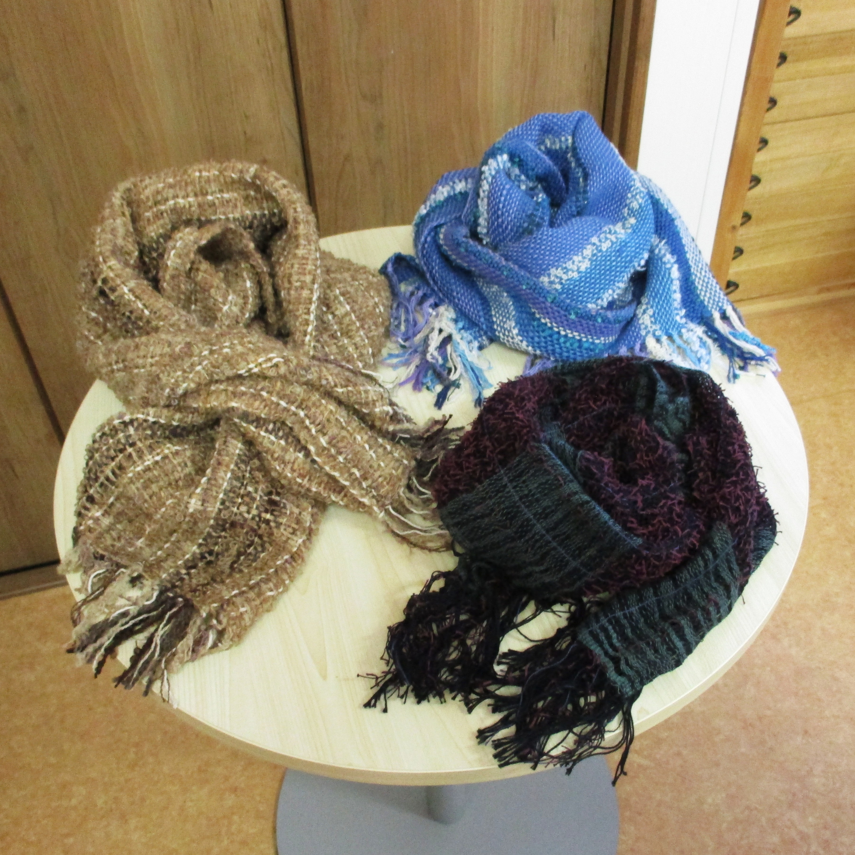 コパンの利用者さんが織ったさをりで作ったストールなどたくさんございます。