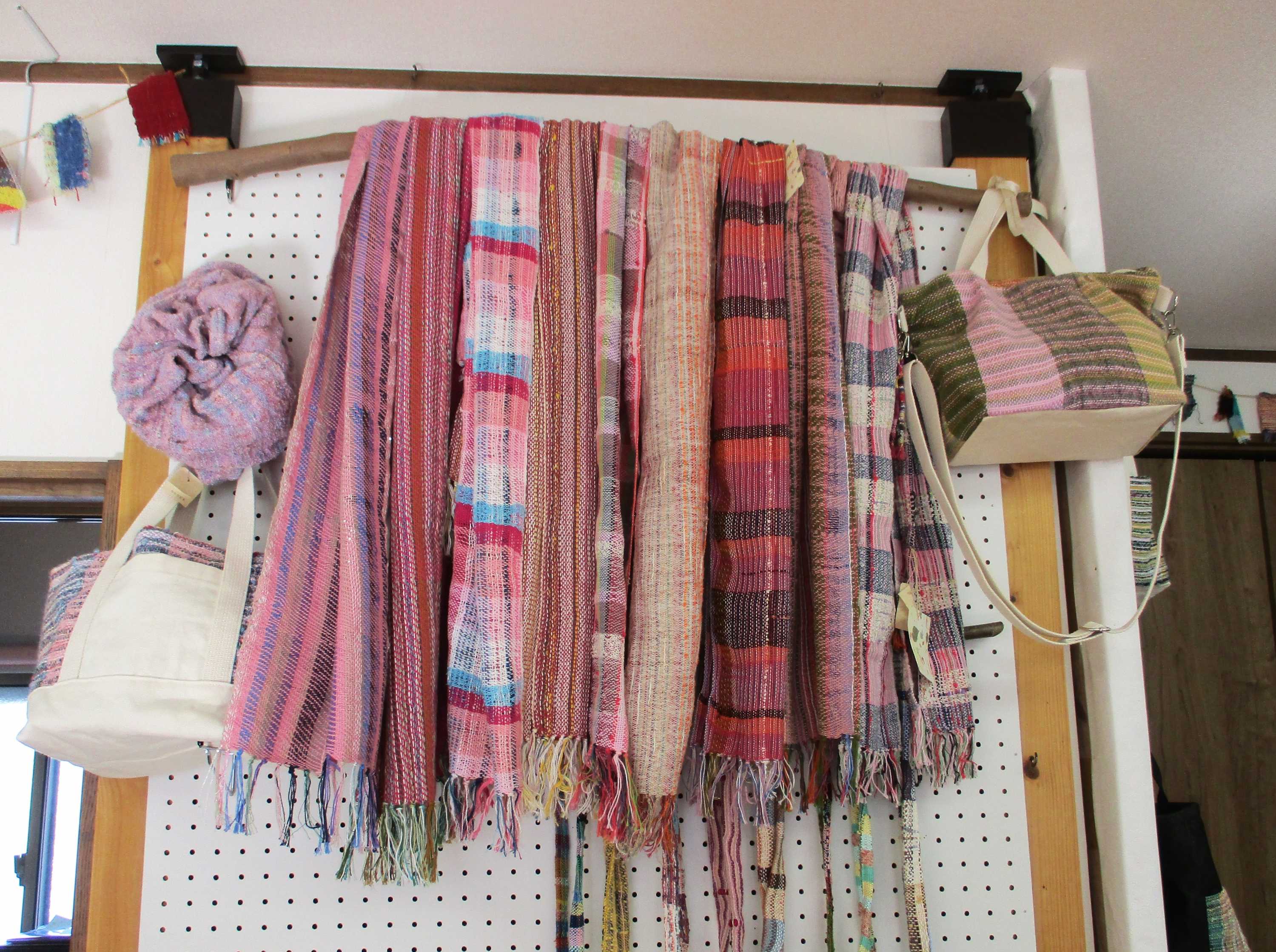 さをり織りのストール・作品も春色の可愛い物がたくさんございます。