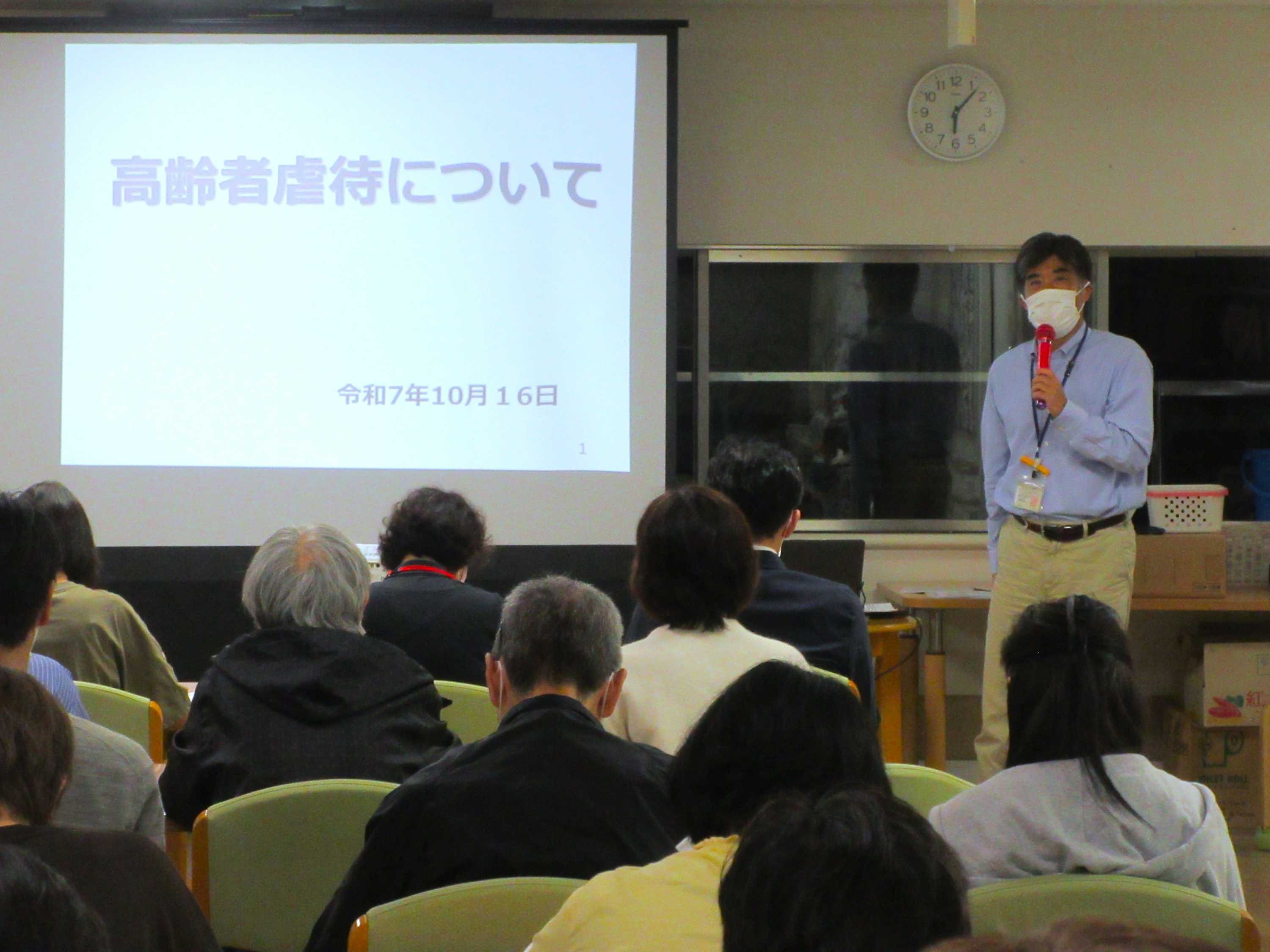 10/16、港南台地域ケアプラザの社会福祉士を講師にお招きし、高齢者の虐待防止に関する研修を開催しました。