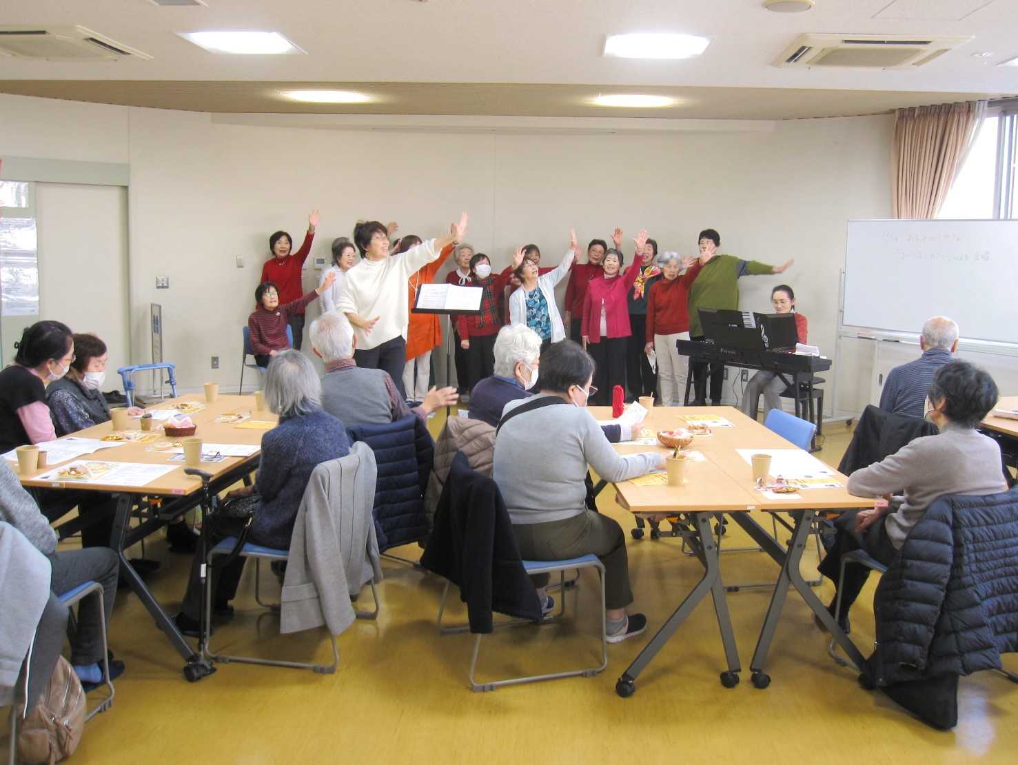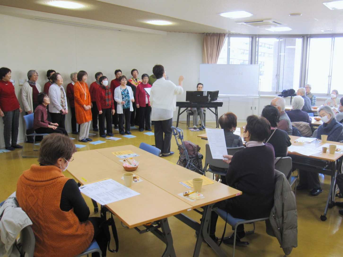 12月のおしゃべりカフェは柳町地域ケアプラザの利用団体「コーラスしおさい」の皆さんに合唱を披露していただきました。