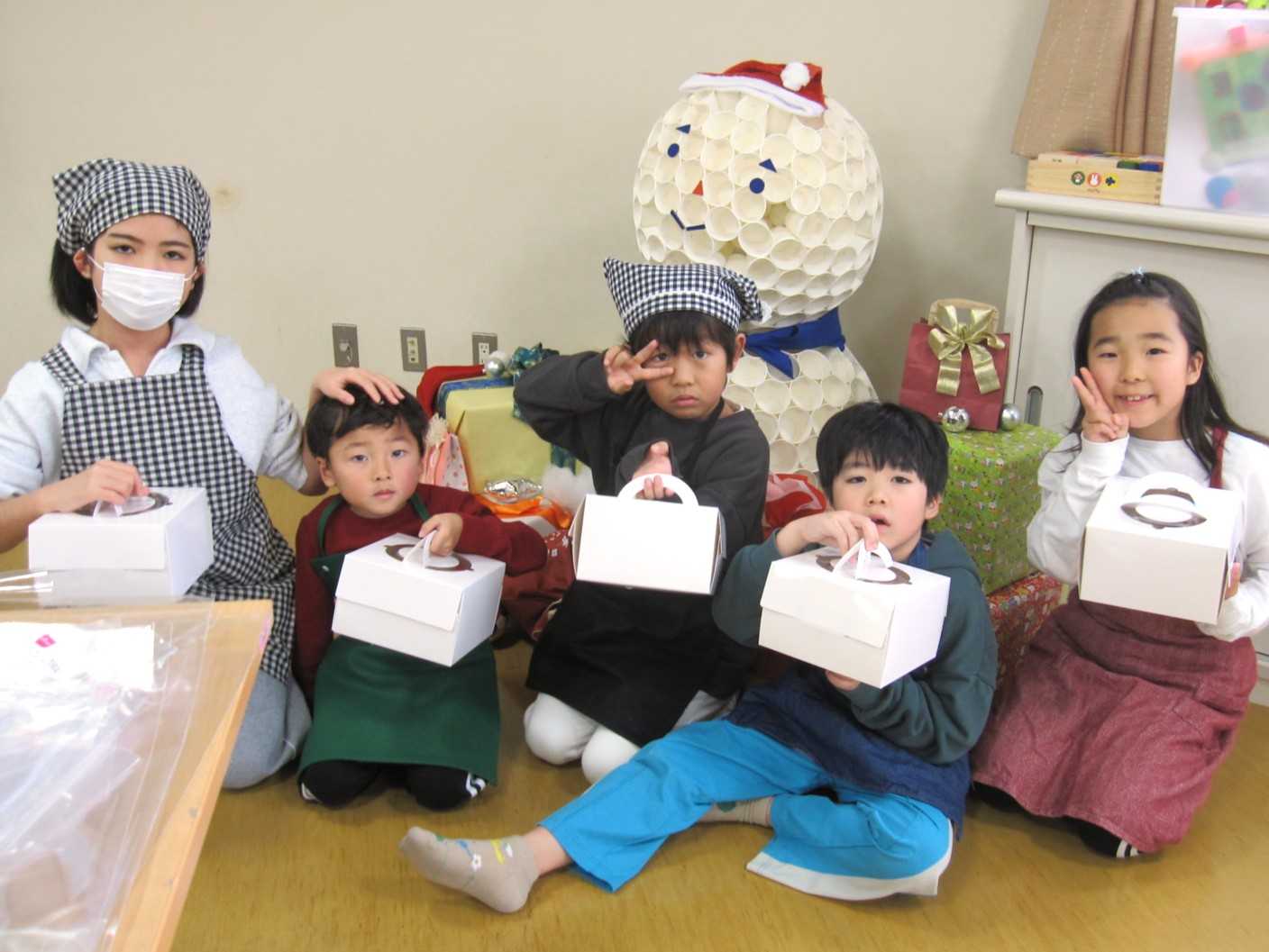 ホットケーキミックスでマフィンケーキを作って、生クリームやイチゴ、マシュマロでサンタや雪だるまの飾りつけを行いました。